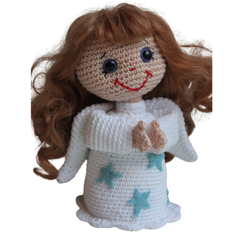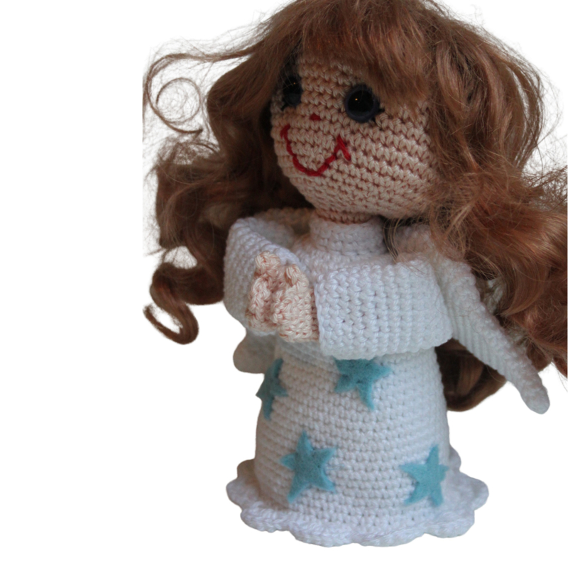 Lief Engeltje van ongeveer 25 cm. groot. Leuk ter decoratie voor de kerstdagen. PDF patroon